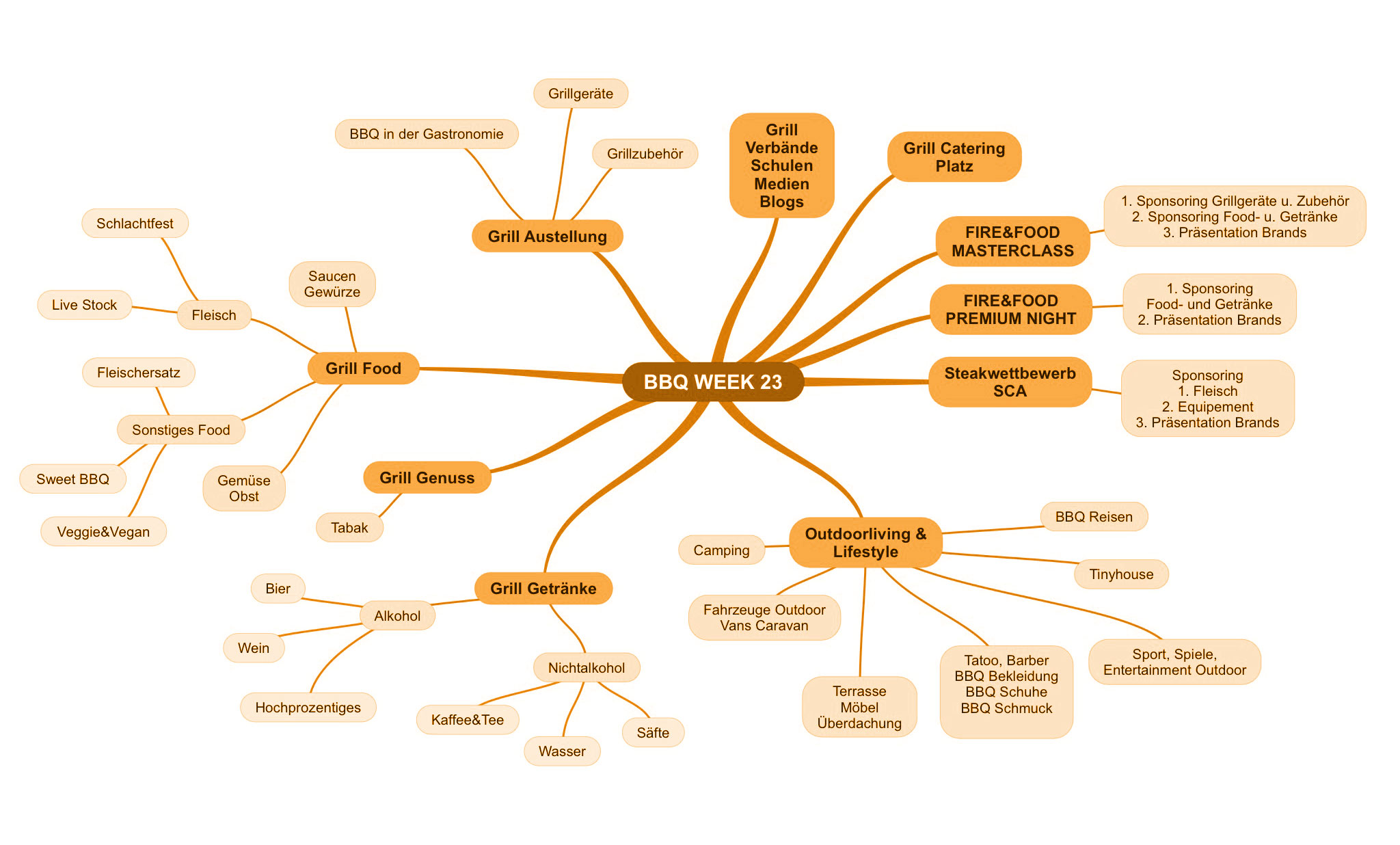 Produktlieferanten und Dienstleister, die im Kontext zu Grillen und BBQ stehen, wie Grillgeräte, Grillzubehör, Grillsaucen und jegliches Grillgut. Des Weiteren sind Produkte zugelassen, die zum BBQ Lifestyle passen.